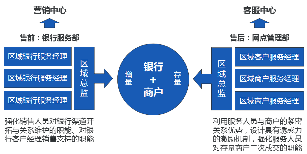 n 營銷升級——》完善營銷中心:豐富市場部、大客戶部職能,增加合作招商部、銀行服務部,撤消之前未真正發揮實際職能的銷售管理部