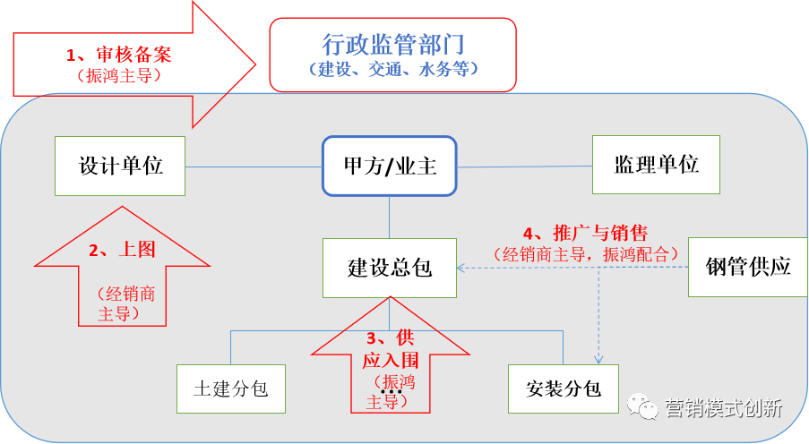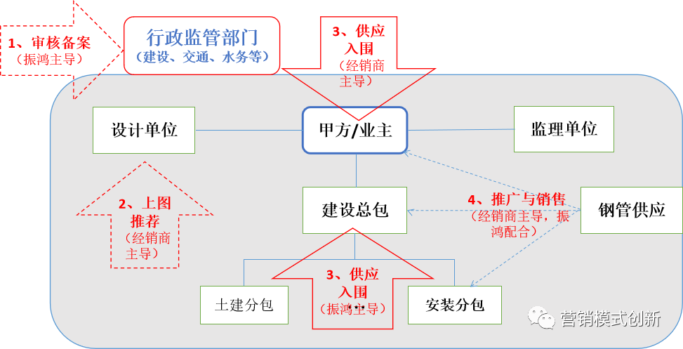 (2)供應資格入圍需要鋼管供應方和甲方即建設方對接,并圍繞甲供、甲指、乙供等采購形式進行推廣和銷售。