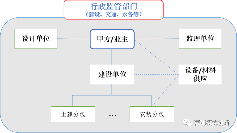 2、和政府項目不同,工程項目投資的主體為企業或個人,民間項目營銷模式如下圖所示: